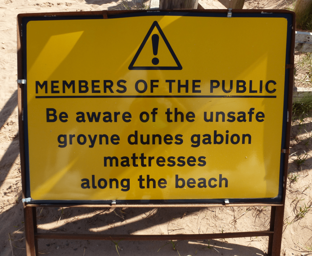A puzzling warning sign, regarding the ongoing attempts to prevent sand erosion from the Warren