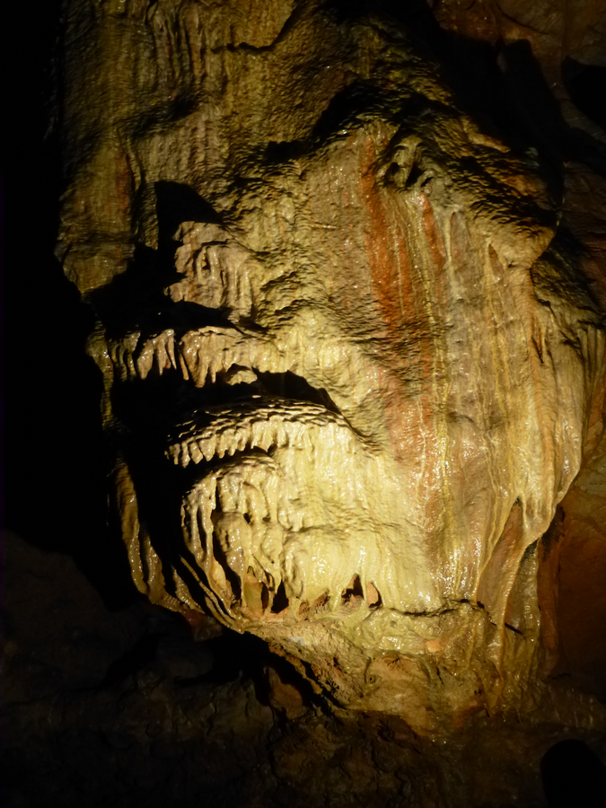 Then we sail under the cliffs below Babbacombe village, an outlier of Torquay now. I have been here several times, to visit the extraordinary, Stone-Age inhabited Kent’s Cavern (see my earlier post, Following the Female Line). Walk through a wooden door in a modern visitor’s centre, and you plunge into another era, of ancient man, and cave-dwelling bears as well. Taking my granddaughters round here was a delight.