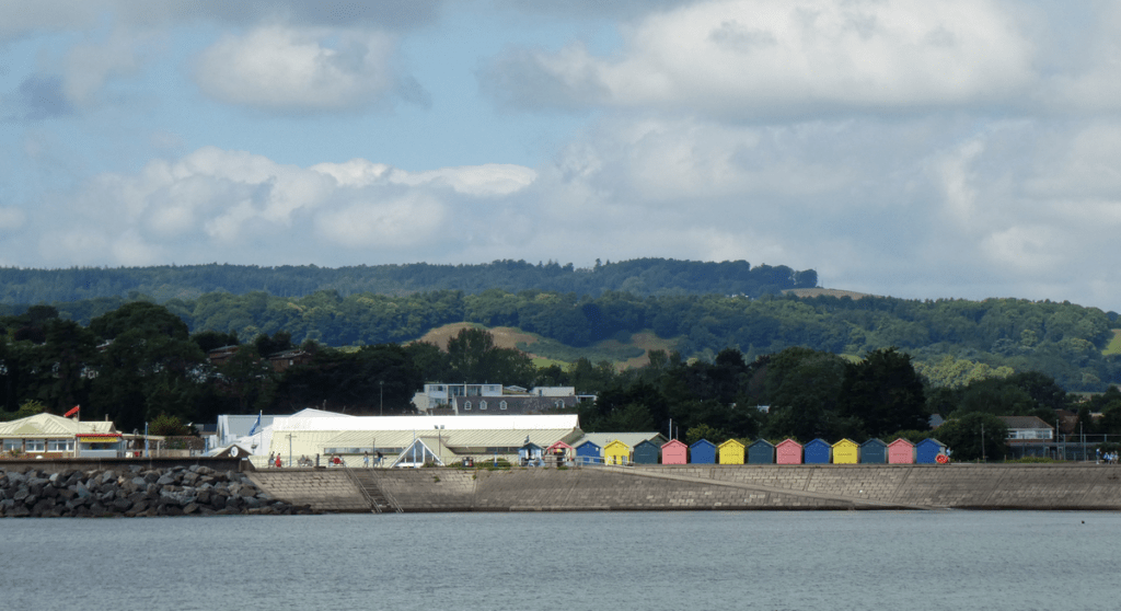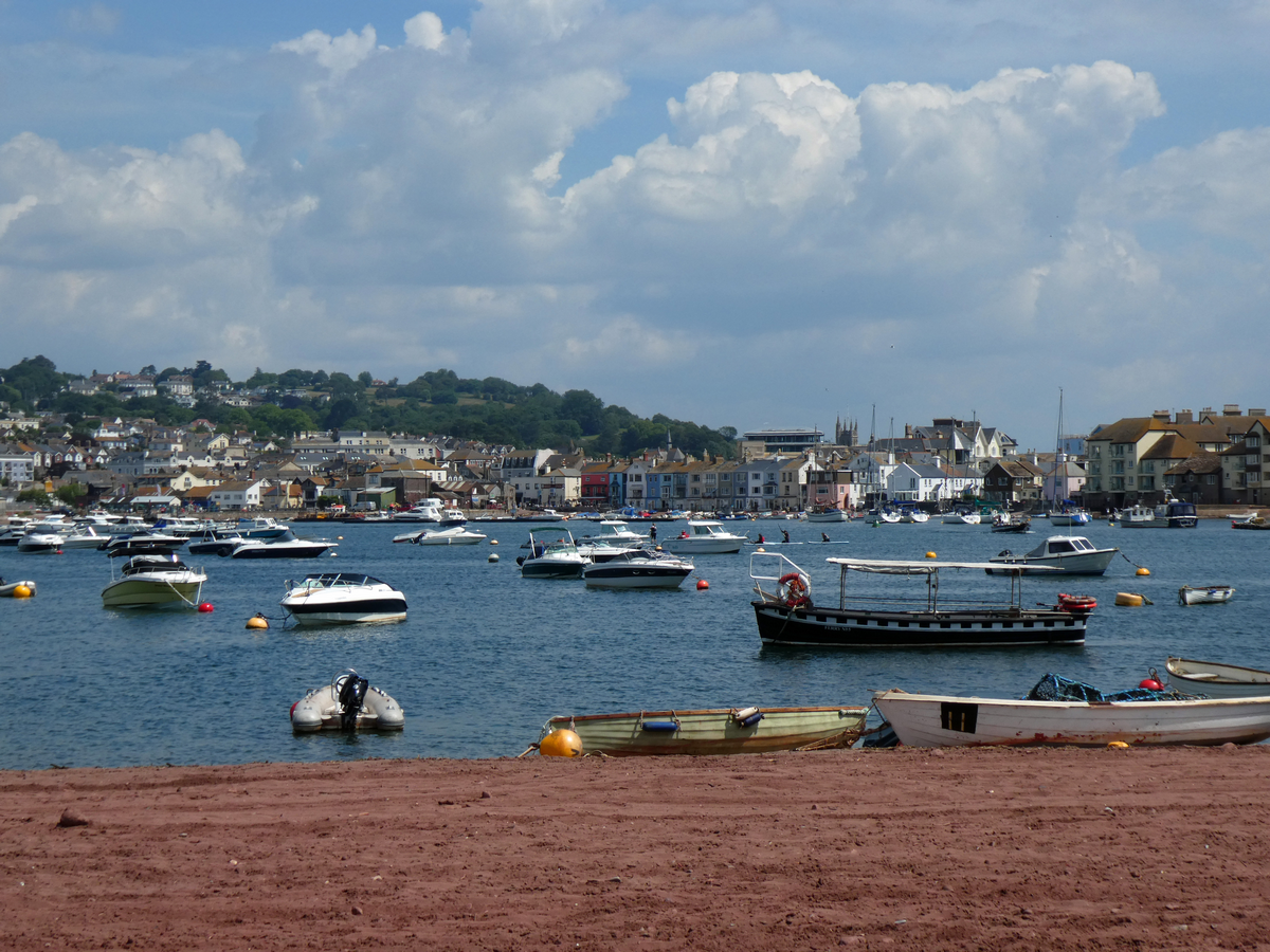 We cast off from the little dock at Exmouth, and soon gain a panoramic view of the seafront. The elegant 18th and 19th century terraces show how it once aspired to be a fashionable bathing station for the monied classes. Like several of the other Devon coastal resorts, its very early days were spent in a humbler manner though: ‘Prior to the 1700’s Exmouth was a small fishing town, with a small harbour, from which Sir Walter Raleigh, born just a few miles away in East Budleigh in 1544, sailed on many of his voyages.’ (Visit Exmouth) In earlier centuries, it also acted as the point of entry into the River Exe, from whence trading ships sailed up to the bustling port of Topsham, (our current home), servicing the wool trade and other enterprises.