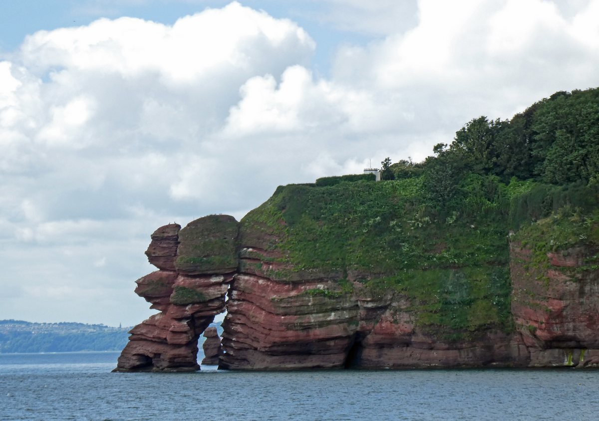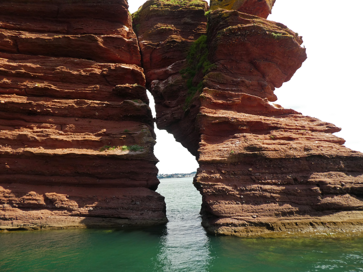 We sail around the corner of the cliff, where just beyond is the hidden beach of The Ness. This is reached, surprisingly, by a foot tunnel on the Shaldon side. (Shaldon itself also has the surprise of a little zoo with a fine population of meerkats and lemurs, a conservation centre for endangered species. ) Descending the steep, dank set of stairs in near-darkness, you begin to hear the waves pounding below. Suddenly, you emerge into daylight and there is the little beach spread out before you. (Not possible, I warn you, at high tide.)