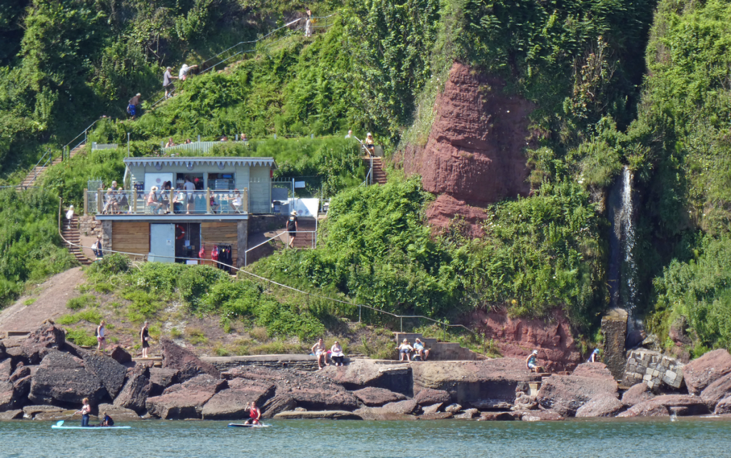 I think we’ve just had our summer holiday this year – a day on the sea, sailing with Stuartline Cruises from Exmouth to Brixham. Like most other people, we’re not expecting to travel far afield this summer. But what could be better, on a warm sunny day, than to set sail along the beautiful Devon coast? We saw rocks and coves, beaches and waterfalls that we would never have known were there. We already knew many of the seaside towns individually, but had no idea how the coastline joins them together.