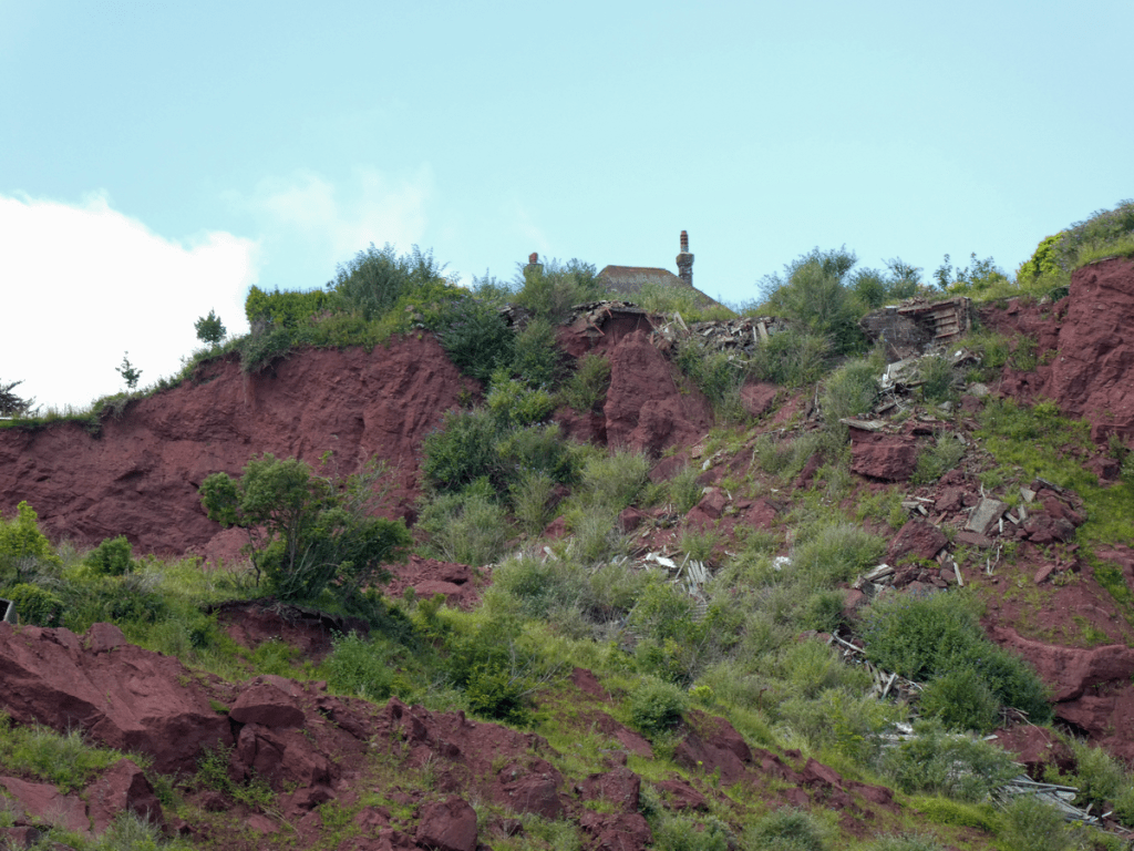 The cliffs ascend steeply here; I know this from experience, as we once walked up the coast path from Shaldon and nearly collapsed before we finally got to the top. It felt as if crampons and a rope might have been sensible equipment to take. Perched a little way further along the clifftop is a modern white house, said to be the plaything of a Russian oligarch.