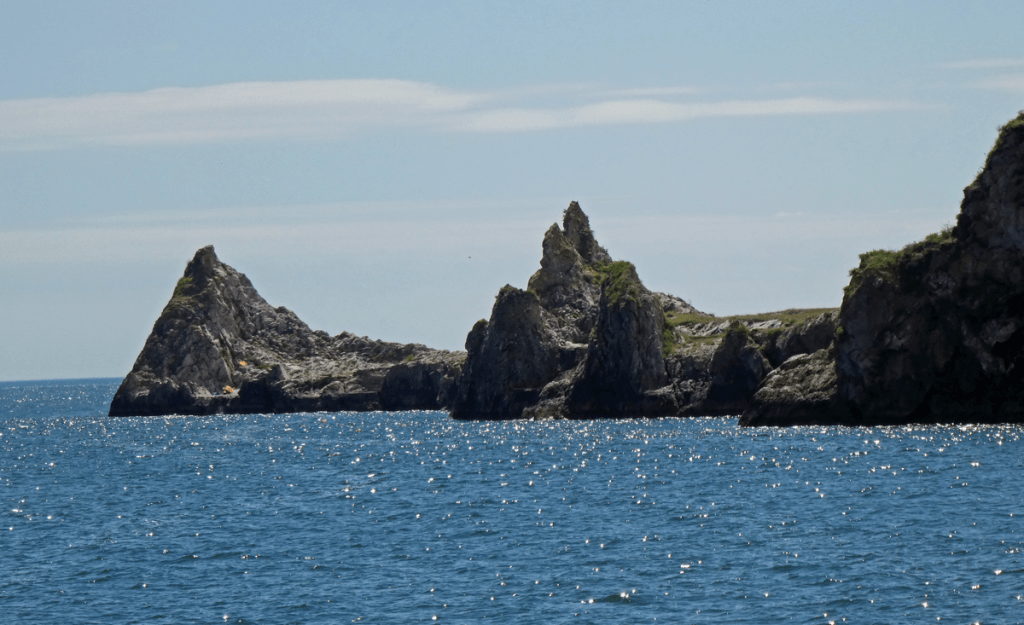 The skipper points out a pile of debris on the cliff top nearby, and tells us the story of the woman who bought a house up there, sight unseen, for a bargain sum of £154,000. However, it wasn’t long before the house started toppling down the cliff. I looked up the story, and the argey-bargey she had with the auctioneers. Read it here. Buyer beware!