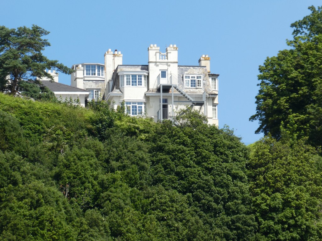 And now it’s a changing scene – we are in Agatha Christie country! The hills are rounder and more wooded. There are hidden coves, rocks to swim towards, steep tree-filled valleys to clamber up, and every now and then, a splendid house fit for a murder mystery.