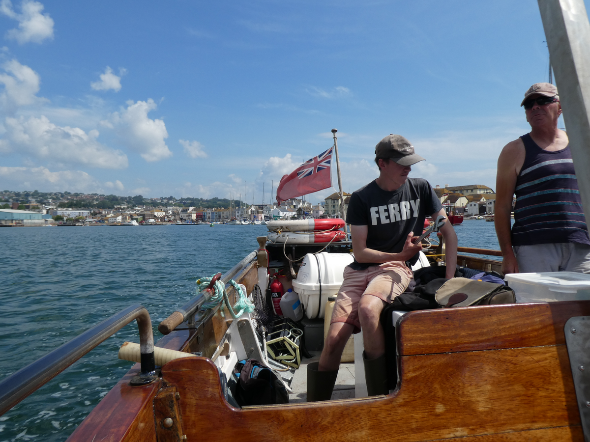 Nearly high tide – we need the extra water level to sail over this way from Exmouth. The skipper says that there is only a metre of sea below the hull of the ship!