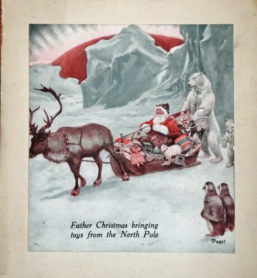 And Santa himself appears in some unusual scenes, such as this one, where he is superintended by a rather menacing polar bear.