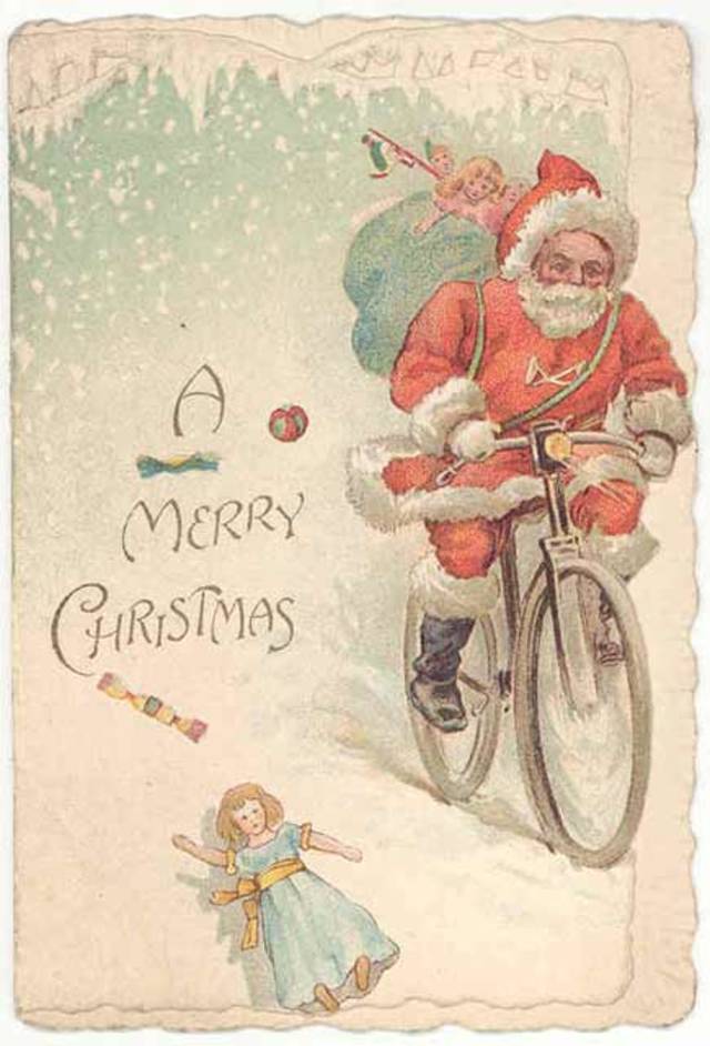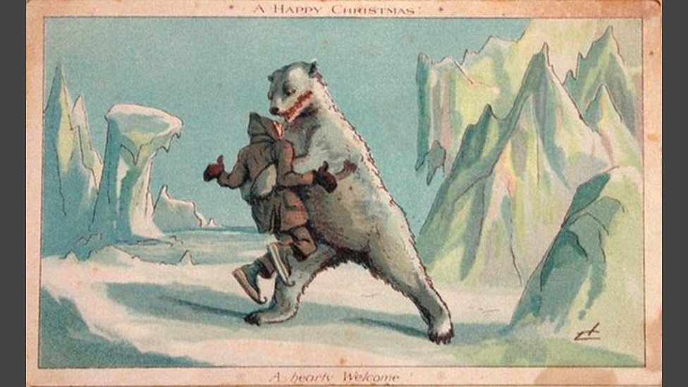 The picture above might seem a more innocent and conventional Father Christmas, albeit on a bicycle – but is he chucking his toys out of the bag in a fit of pique? And if Father Christmas doesn’t get you, a polar bear might.