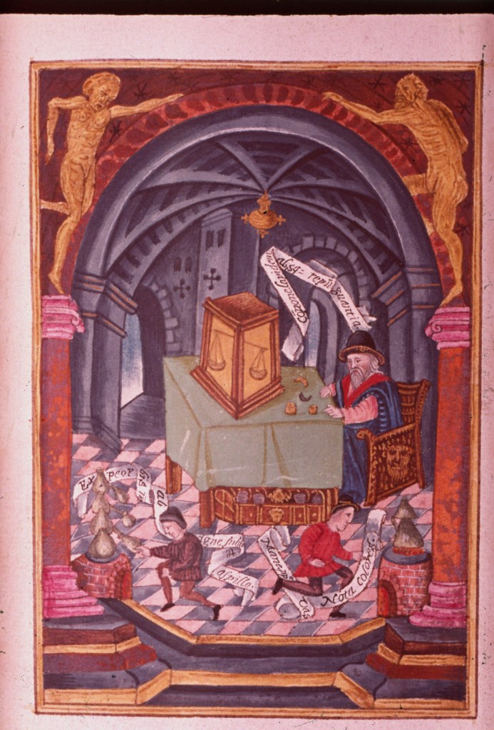 The Alchemist and his Apprentices, from the Theatrum Chemicum Britannicum, early 14th century